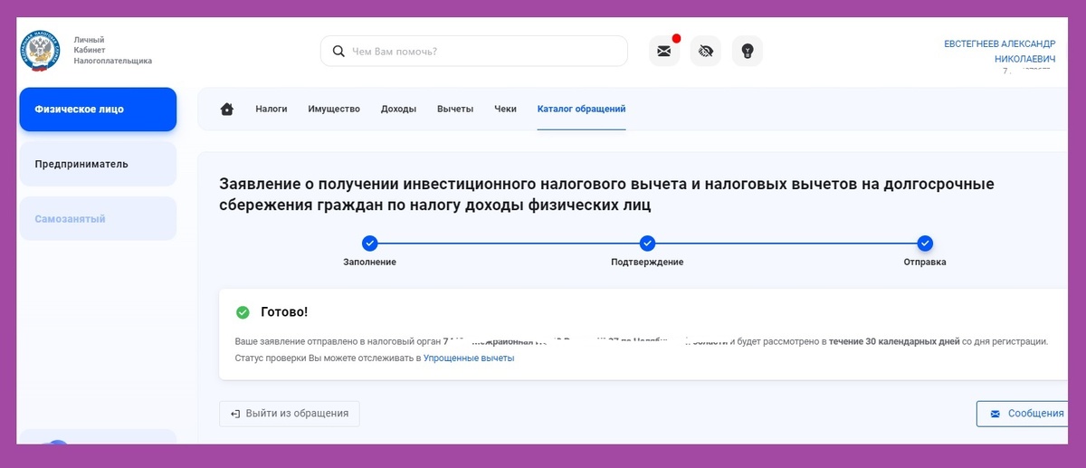 Только что подал заявку на сайте Налоговой инспекции на получение инвестиционного вычета по своим вложениям за прошлый год.