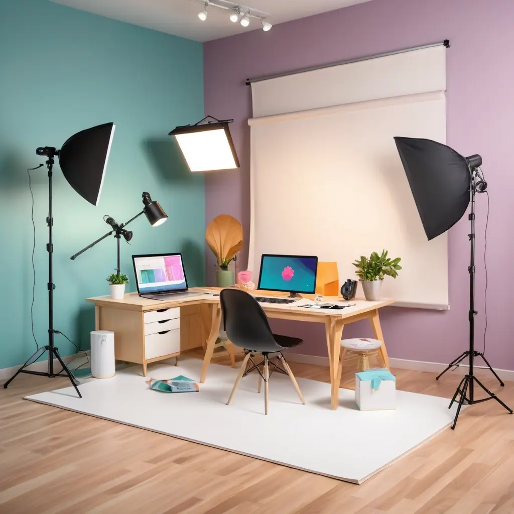 - Естественный свет: Рабочий стол напротив окна в светлое время суток дает мягкий свет, который подчеркивает текстуру товара без лишних финансовых затрат.