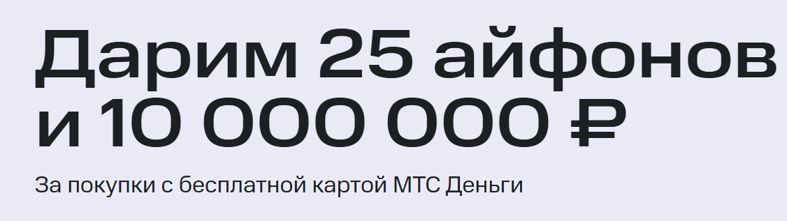 МТС Банк предлагает уникальную возможность для пользователей, оформляющих карту “МТС Деньги”. Участие в розыгрыше привлекает внимание и делает процесс оформления более привлекательным. Не просто карта, а шанс выиграть одну из 25 айфонов или даже 10 000 000 рублей – это действительно заманчиво.